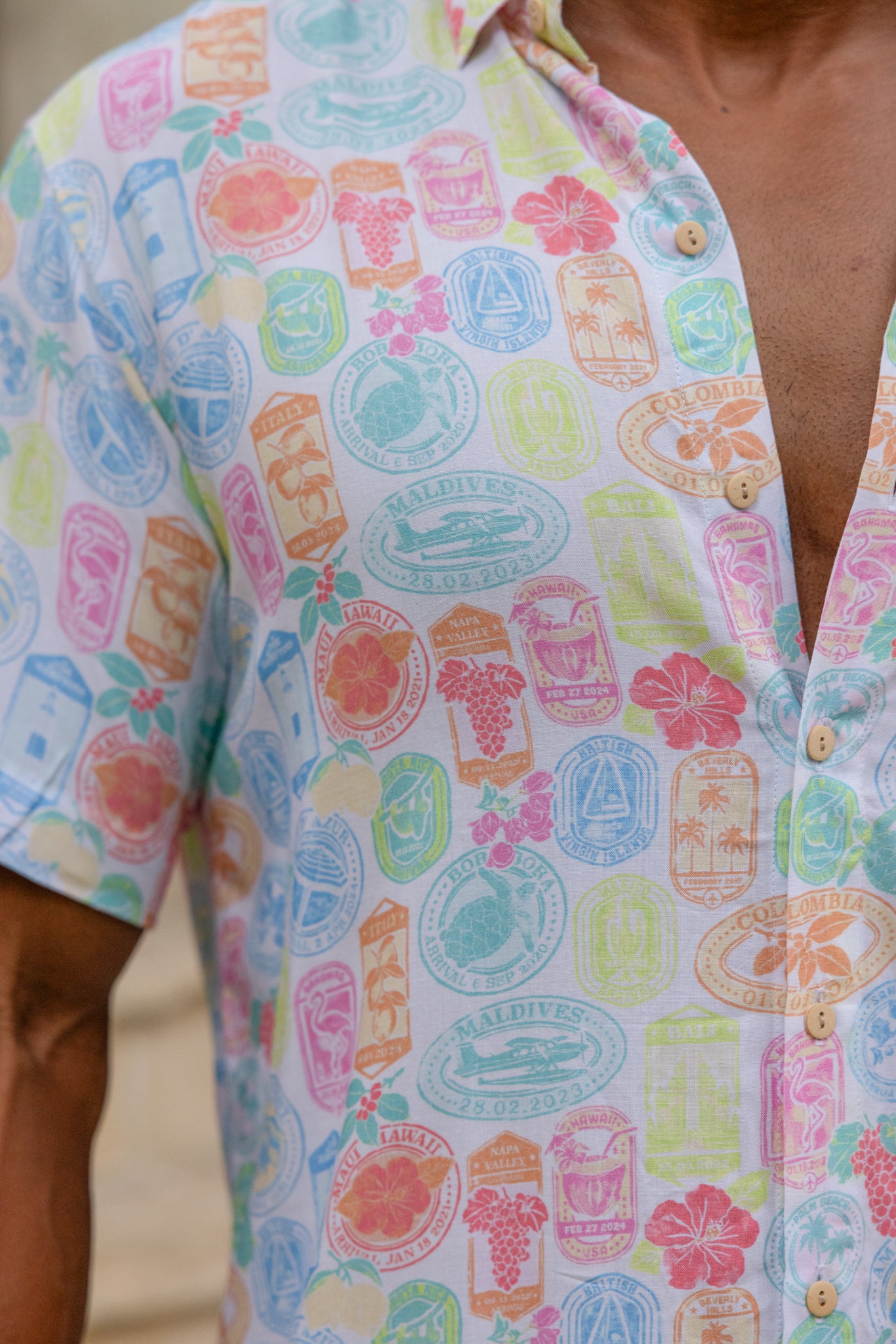 Short Sleeve Passport Print Hawaiian Shirt