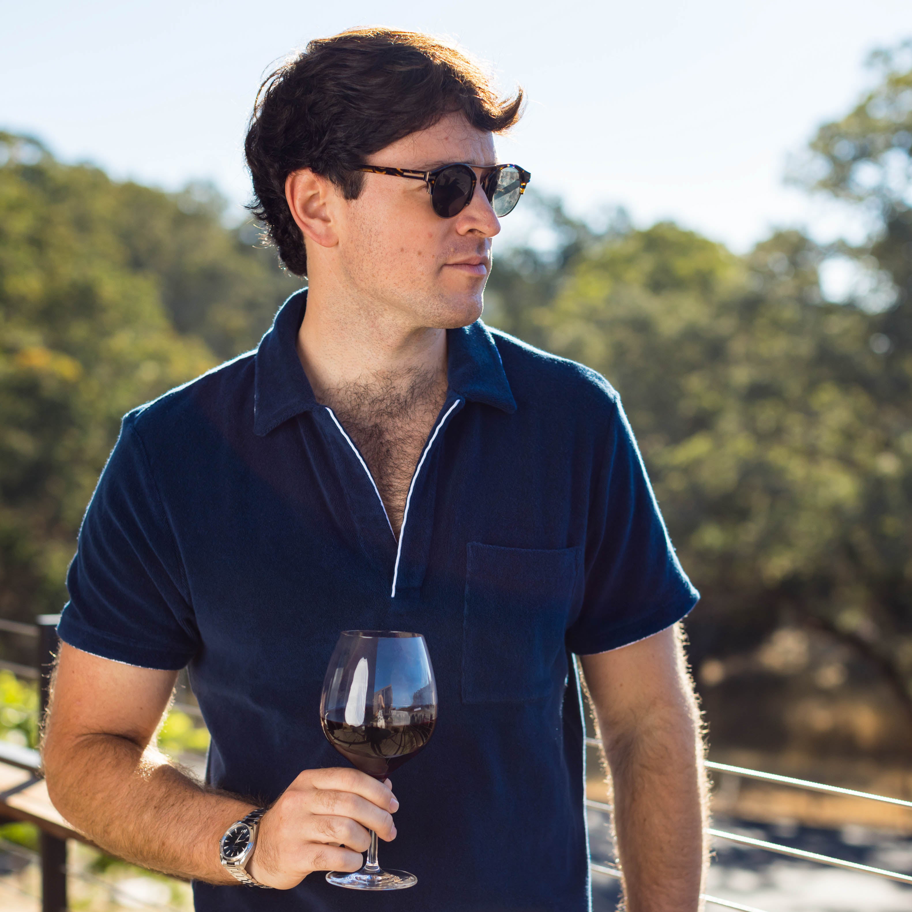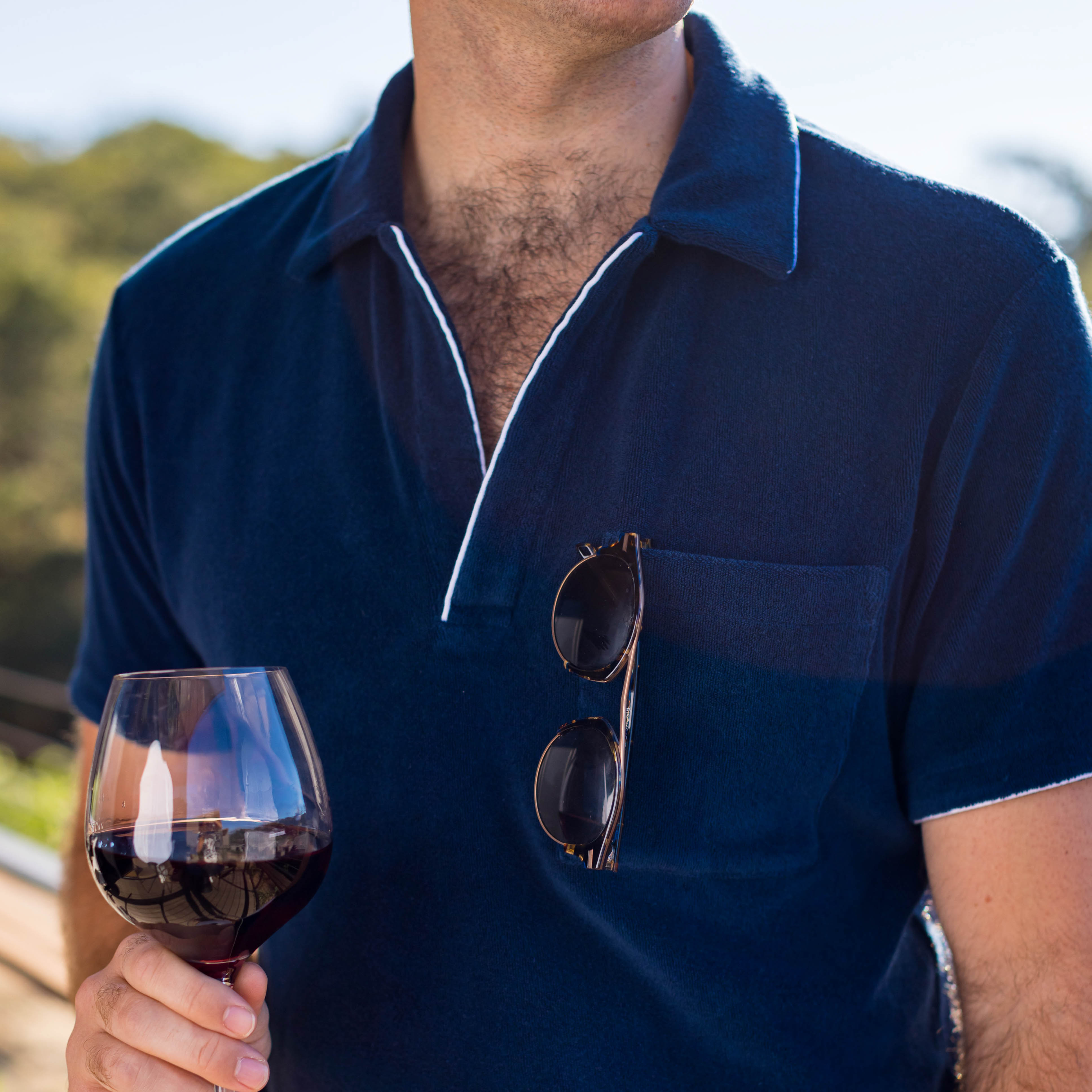 Piped Navy Terry Polo Mens Shirt