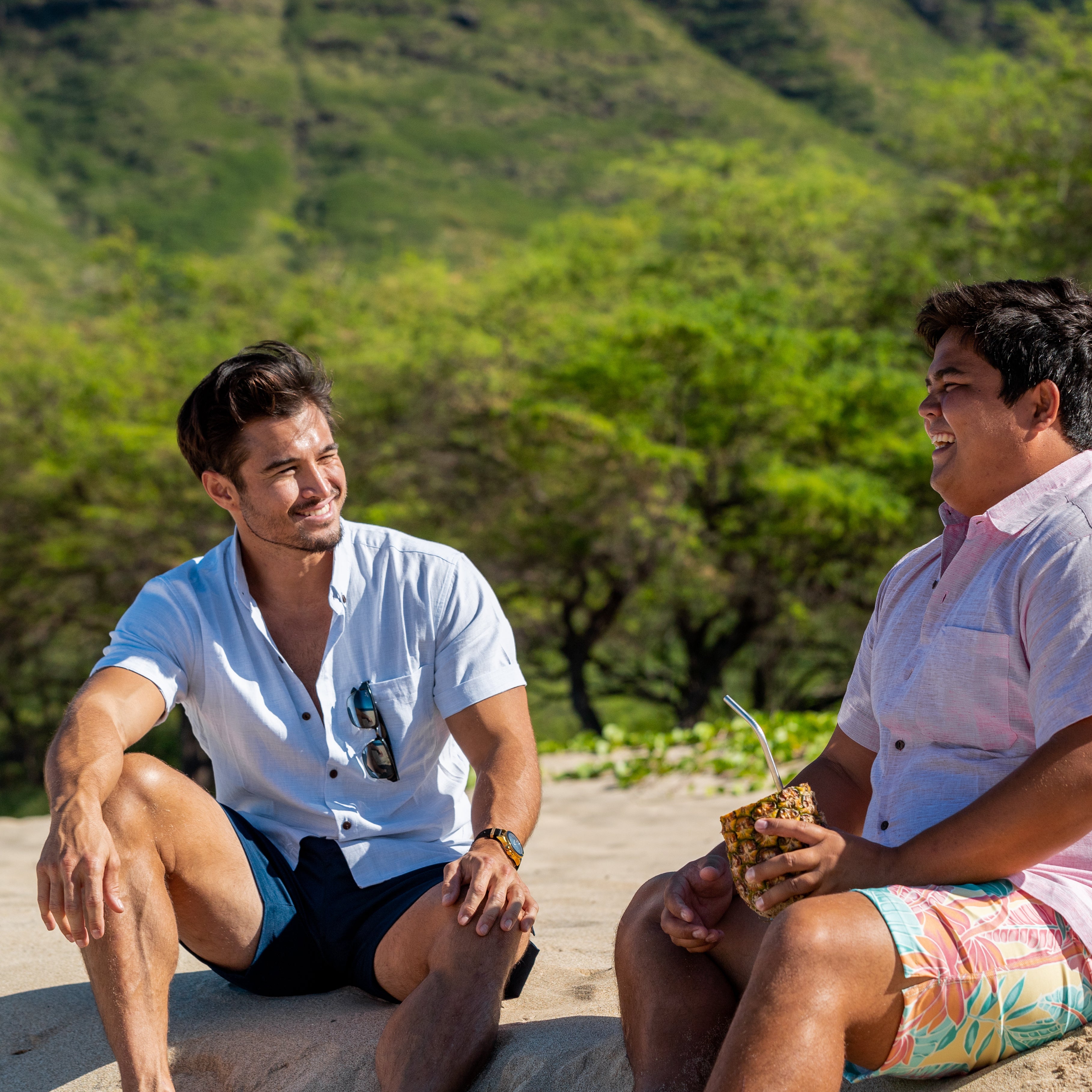 Modeled by our friend Jack, who is 6'0 and is wearing a size medium. Modeled by our friends Rob & Gabe, who are both 5'10 and wearing a size Medium (Slim), and Po who is 5'11 wearing an XXL (Regular).